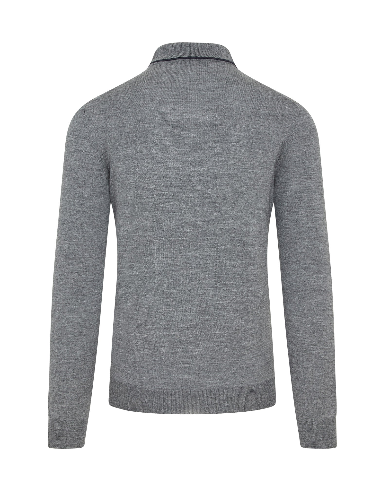 Long Sleeve Silk/Wool Contrast Zip Polo (Grey Marl)